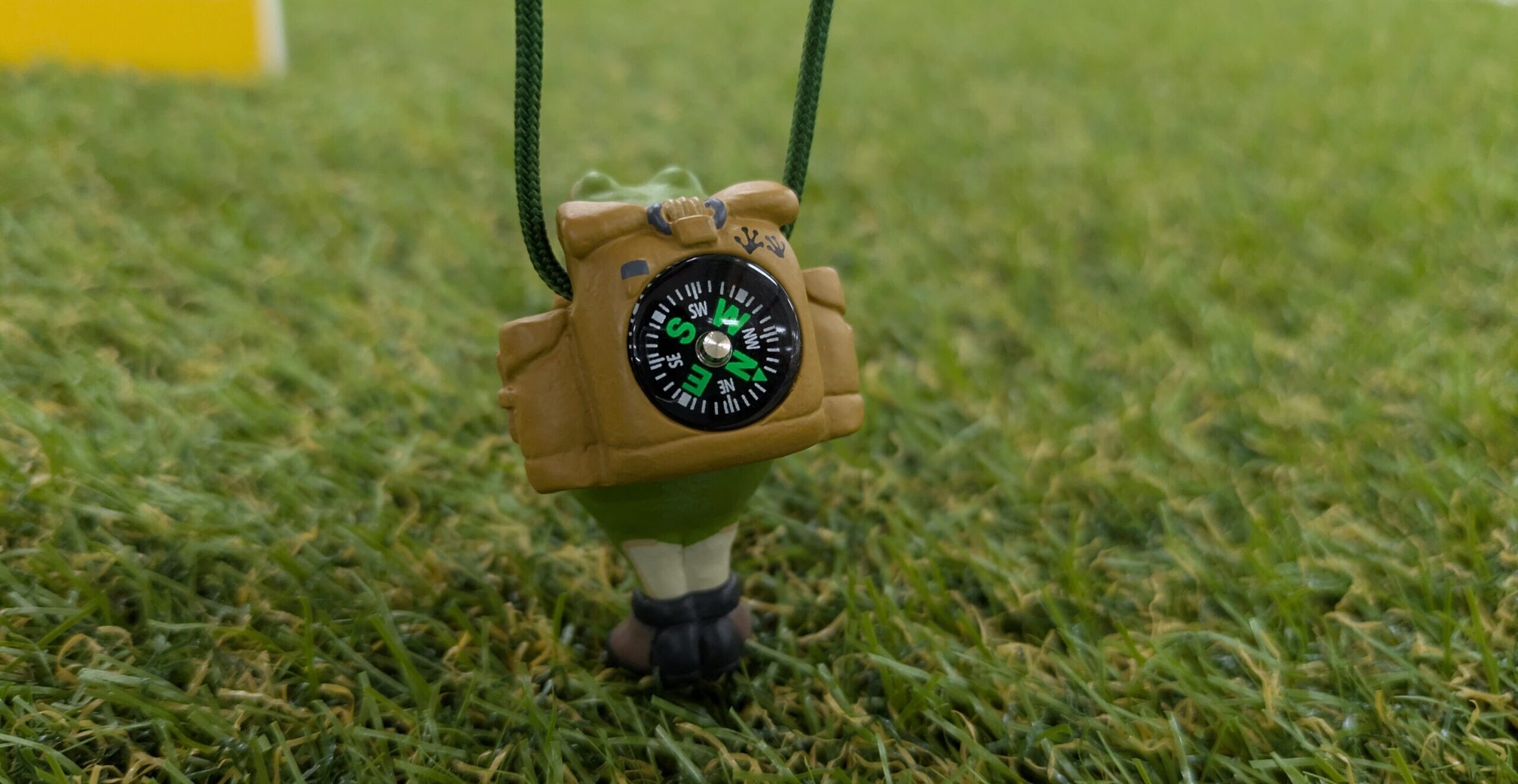 アマガエルがリュックを背負ってるフィギュア。背中にコンパスが埋め込まれてます!