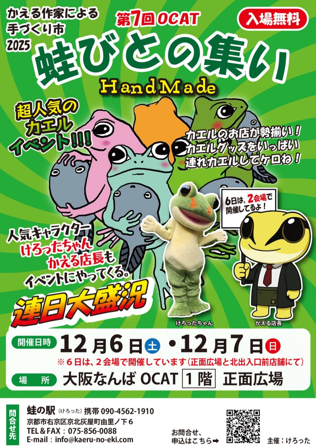 大阪なんばOCAT1階正面広場にて2日間開催!!約29店舗のカエル作家が集合!
